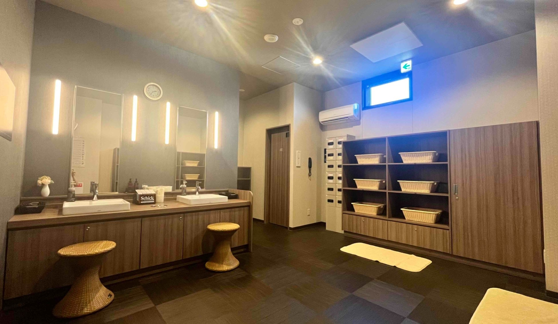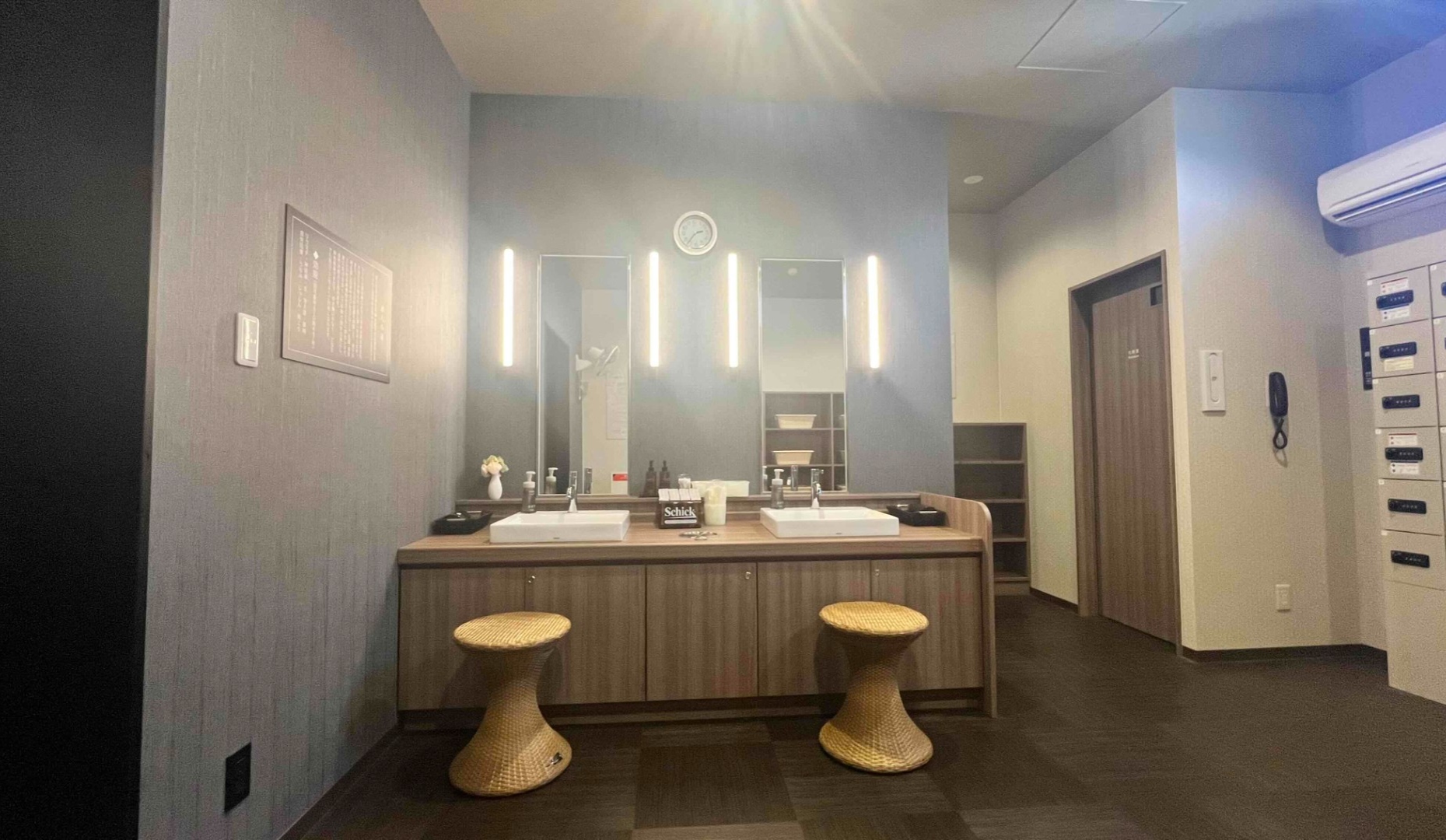 女性大浴場入り口を施錠しております。