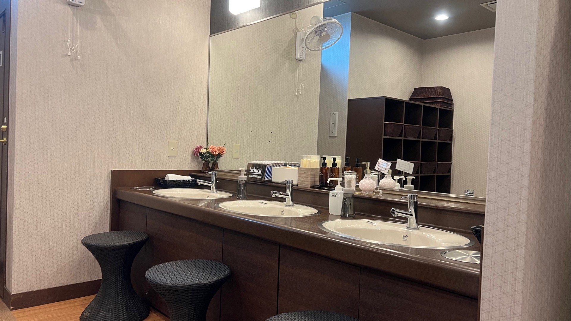 女性大浴場入り口を施錠しております。
