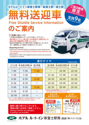 新富士駅まで無料送迎をしております。毎日運行しております。